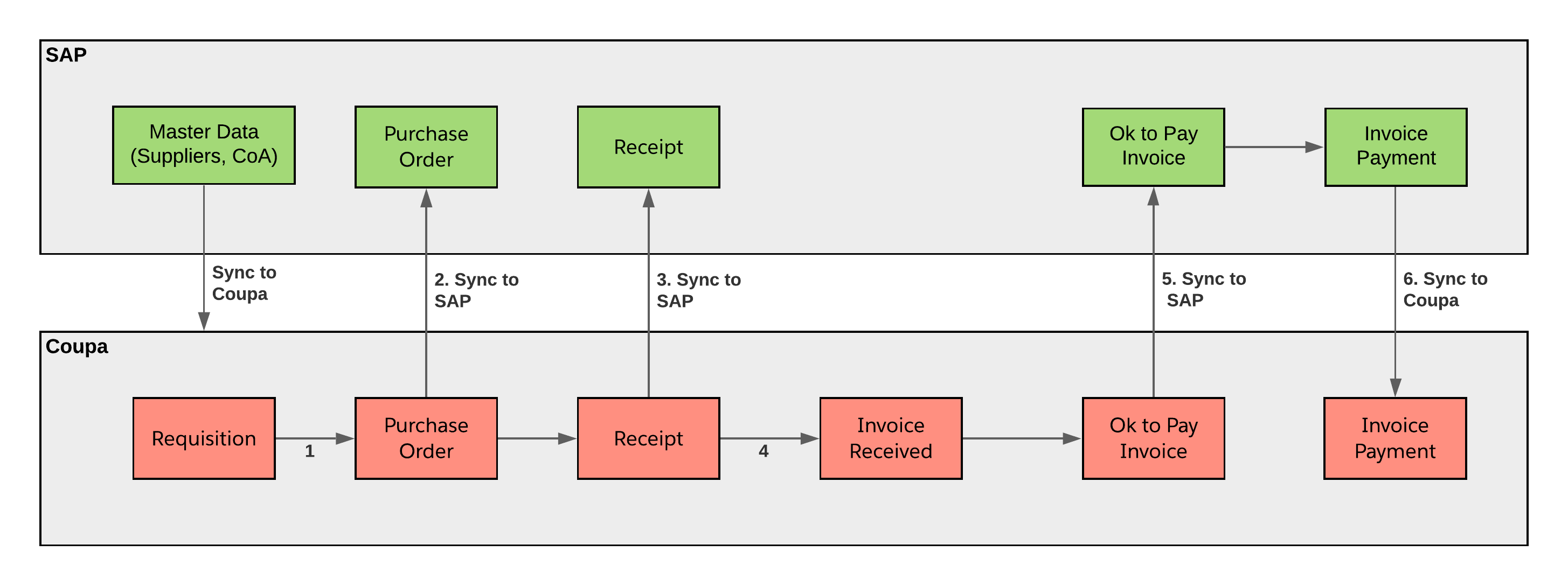 - The Invoice payment is initiated from SAP and once it is paid, it needs to be reflected in Coupa. Eventually, the payment is received by the supplier, which concludes the full process.
